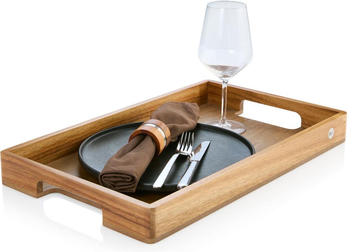 Taca do serwowania, Serve. Taca wykonana została z najwyższej jakości, solidnych materiałów. Ma matową powierzchnię, ale dla kontrastu jej dolne części, które pod naturą są pomalowane na połysk czarnym lakierem. Taca została wyposażona w antypoślizgową powłokę u góry, żeby przenoszone nią …