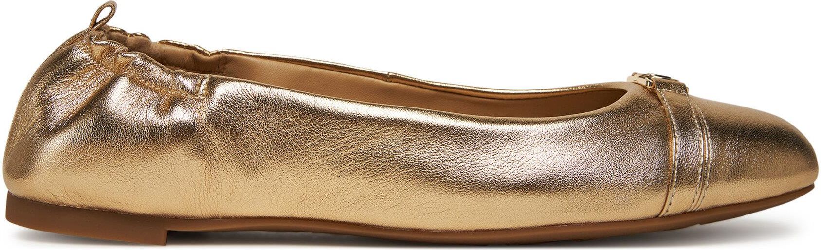 Baleriny Michael Michael Kors w złotym kolorze to perfekcyjny wybór dla kobiet, które pragną dodać swoim stylizacjom odrobiny luksusu. Wykonane z wysokiej jakości skóry naturalnej licowej, łączą w sobie elegancję i trwałość. Ich okrągły nosek zapewnia wygodę, a metaliczny styl dodaje im nowoczesnego charakteru, który przyciąga uwagę. Idealne zarówno na wyjątkowe okazje, jak i do codziennych zestawów, baleriny te stanowią połączenie modowego wyczucia z komfortem noszenia.
