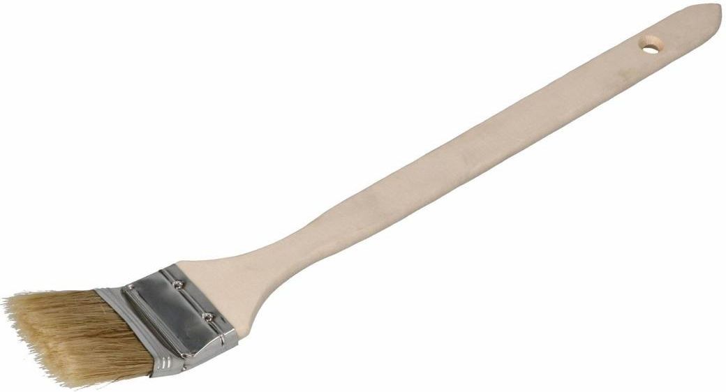 Pędzel kaloryferowy o specjalnej formie, która umożliwia malowanie kaloryferów Dzięki odpowiednio długiej, kątowej rączce możliwy jest dostęp do trudnych miejsc podczas malowania Mieszanka naturalnej szczeciny z poliestrem zapewnia optymalne rozprowadzenie farby na powierzchni i zapewnia dobre krycie. Domieszka włókien poliestrowych zapewnia odpowiednią stabilność i sprężystość włosia.