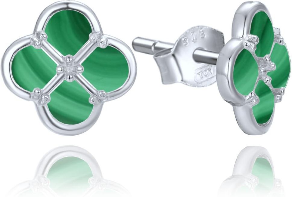 Minet Srebrne kolczyki koniczyna z malachitem Skarszewy