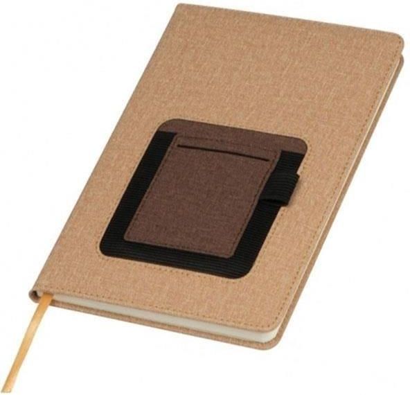 Elegancki notes o formacie A5 ze 160 kartkami w kropki, zakładką oraz pętelką na długopis. Na okładce znajduje się kieszonka na telefon.