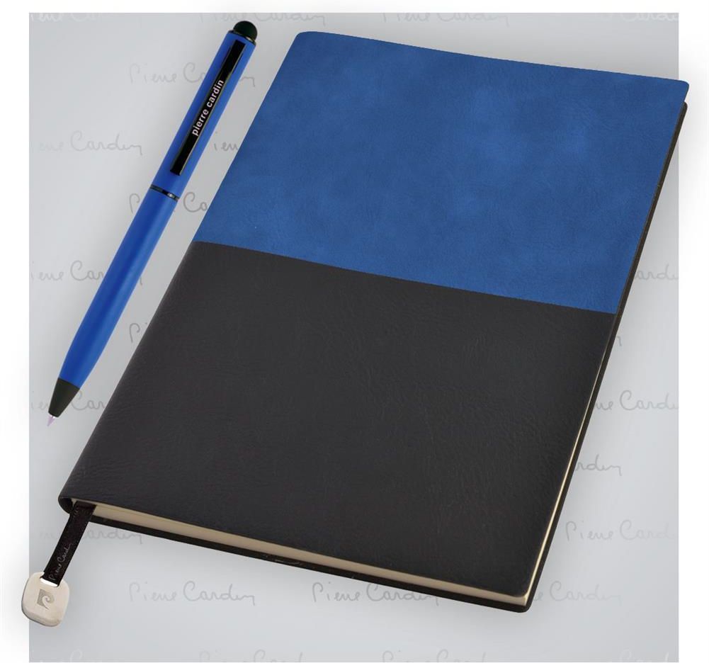 Luksusowy, dwukolorowy notes o formacie A5 z okładką imitującą skórę w komplecie z długopisem z serii CELEBRATION. Notes posiada 160 stron w wykropkowane linie, gramatura 80 g/m2 oraz zakładkę z metalowym elementem. Z tyłu na okładce tłoczone logo Pierre Cardin. Długopis wykonany z aluminium w modnych, intensywnych kolorach. Posiada przyjemną w dotyku powierzchnię soft touch i czarne detale oraz funkcję touch pen. Wyposażony w wysokiej jakości niebieski wkład z końcówką 0,7 mm. Całość zapakowana w eleganckie pudełko prezentowe z certyfikatem autentyczności Pierre Cardin.