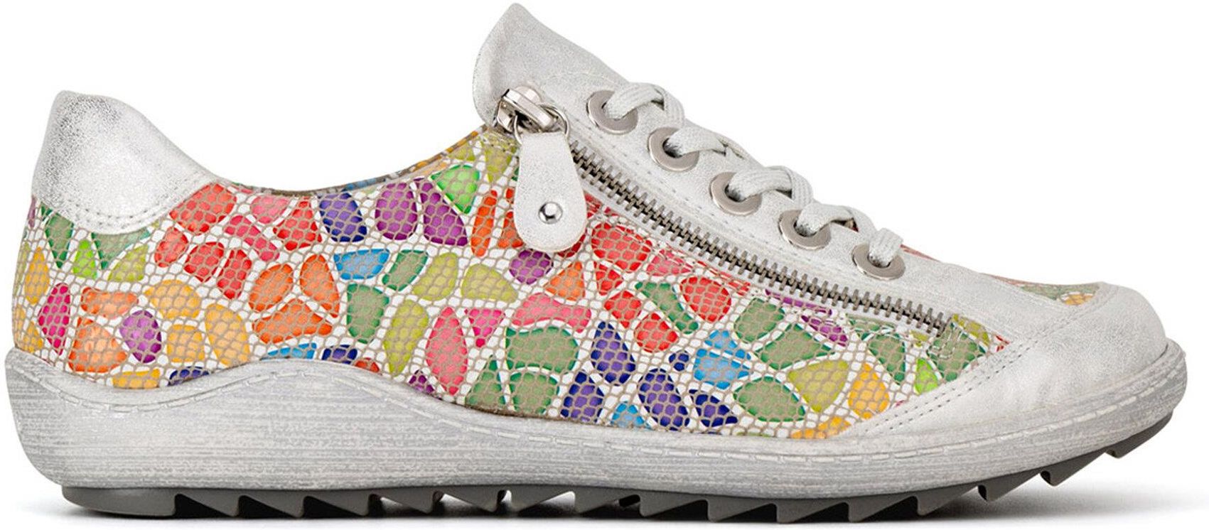 Wielokolorowe sneakersy damskie Remonte to idealne rozwiązanie dla kobiet, ceniących sobie styl i komfort. Wykonane ze skóry, zapewniają nie tylko trwałość, ale także elegancki wygląd. Dzięki zapięciu na suwak, zakładanie butów jest szybkie i wygodne. Te sneakersy to doskonałe uzupełnienie każdej casualowej stylizacji, dodając jej unikalnego charakteru. Sprawdzą się doskonale zarówno na co dzień, jak i podczas wyjątkowych okazji, kiedy chcesz czuć się komfortowo i wyglądać modnie. Wybierz sneakersy Remonte i ciesz się wyjątkowym stylem na każdym kroku! Marka Remonte to szwajcarska firma obuwnicza, w której ofercie znajdziemy botki, półbuty i sandały damskie wykonane z iście szwajcarską precyzją. Marka stawia na ponadczasowe fasony w nowoczesnym wydaniu, dlatego w większości modeli wykorzystuje materiały wysokiej jakości, jak skóra naturalna, które poza atrakcyjnym designem, oferują też trwałość i wytrzymałość. Buty Remonte projektowane są z myślą o tych osobach, które cenią sobie komfort i wygodę. Są lekkie, elastyczne, a ich konstrukcja pozwala chodzić w nich przez cały dzień bez uczucia zmęczenia. Poznaj ofertę marki Remonte w CCC!