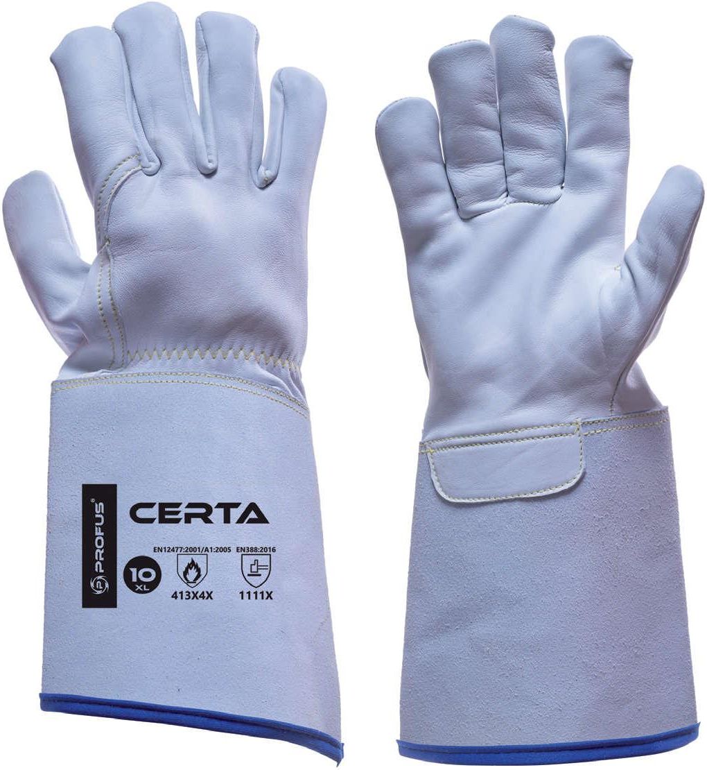 Rękawice ochronne spawalnicze CERTA Rękawice ochronne spawalnicze CERTA zostały wykonane z połączenia skóry licowej koziej (dłoń) oraz dwoiny bydlecej (mankiet), dlatego też posiadają dobrą odporność mechaniczną i termiczną. Są szczególnie polecane dla spawaczy używających metody Tig. Ochrona przed …