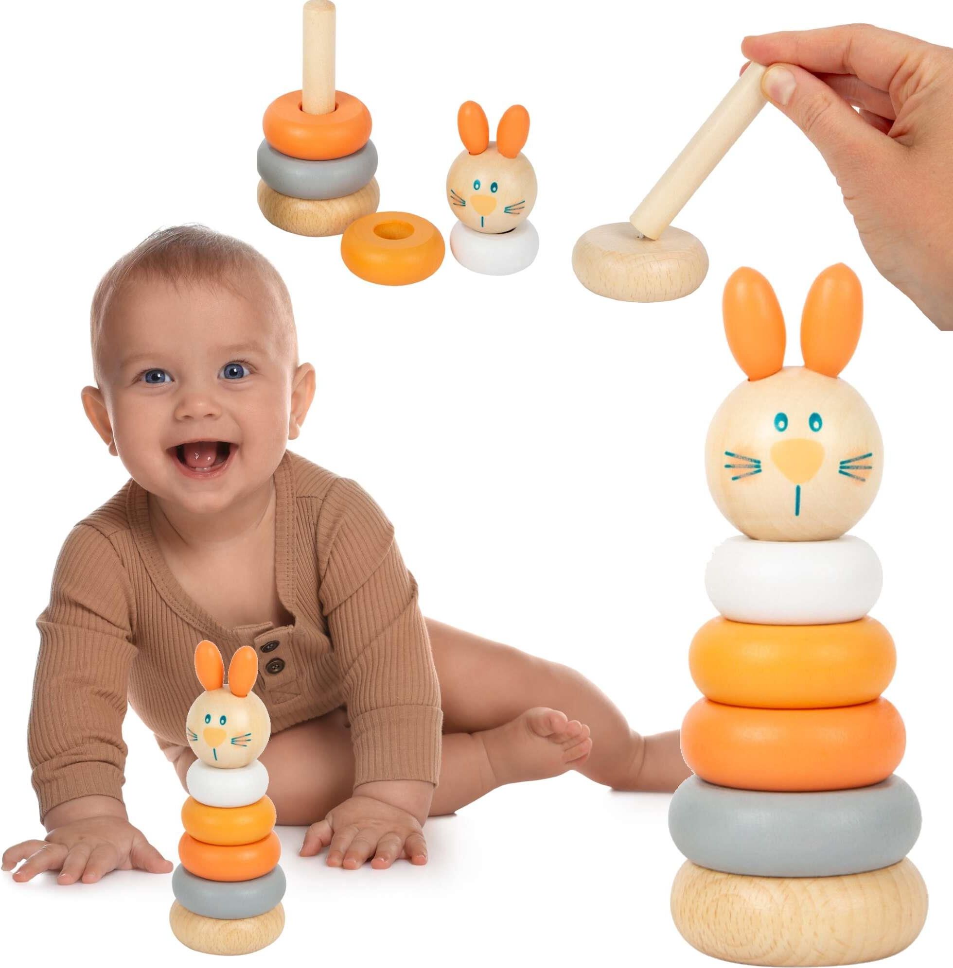 Small Foot Zestaw 5 sztuk - Drewniana Wieża Królik Piramida z kółek Układanka Montessori Skarszewy