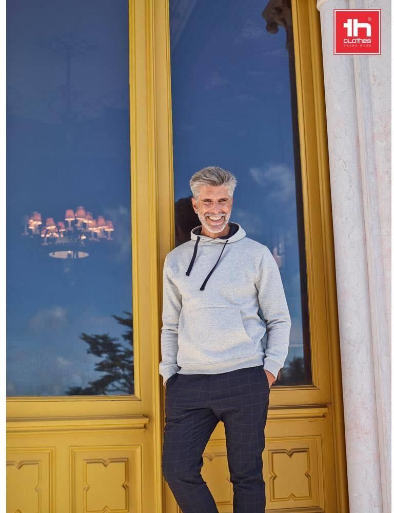 Bluza z kapturem (unisex). 50% bawełna i 50% poliester (320 g/m²), zgrzebna wewnątrz. Ściągacz 1x1 na mankietach i na dole. Kieszeń typu kangurek i kaptur ze sznurkami w kontrastującym kolorze. Rozmiary: S, M, L, XL, XXL