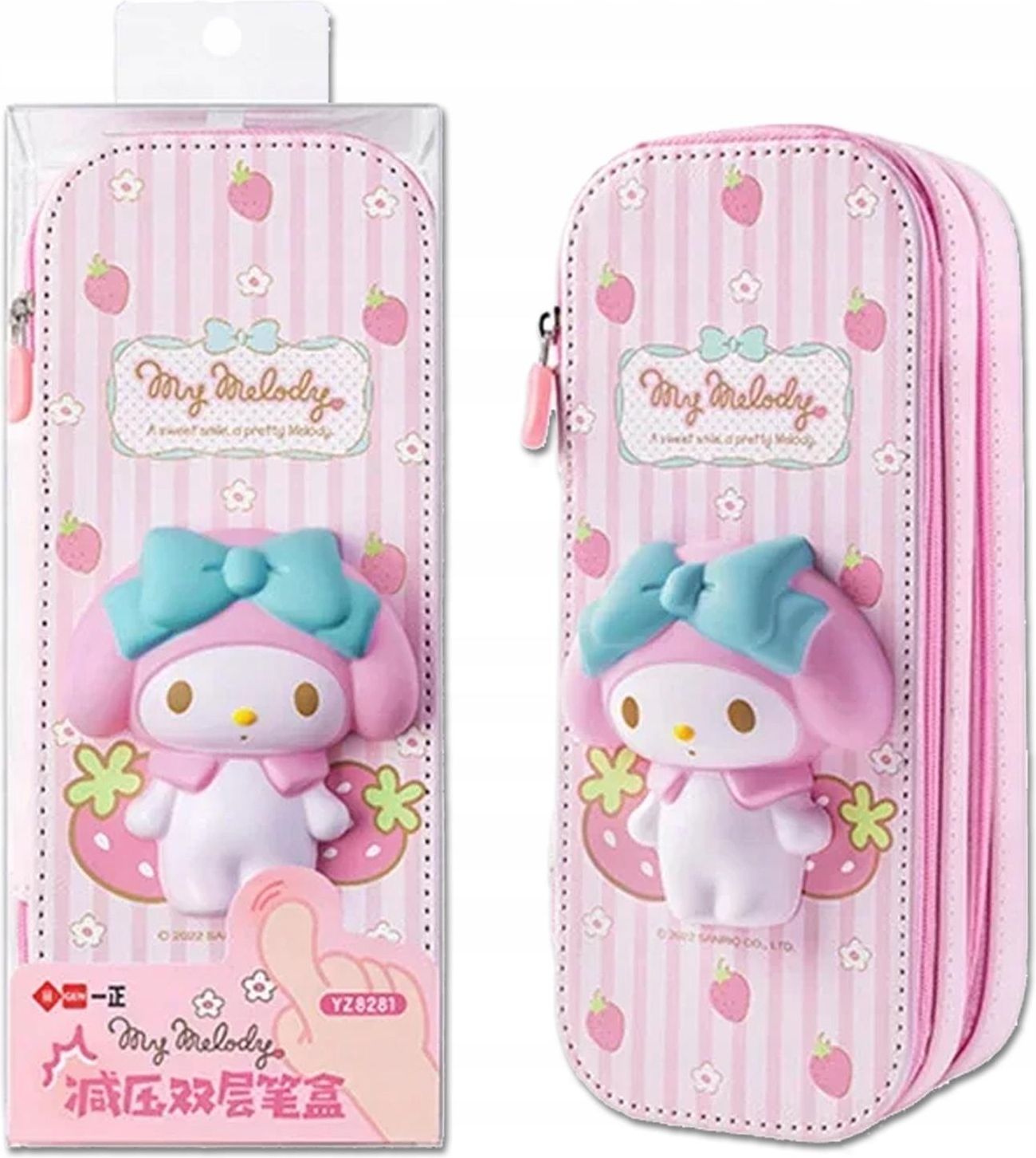 Piórnik 3D - My Melody z bajki Hello Kitty Wzór: My Melody Szukasz pojemnego i stylowego piórnika, który pomieści wszystkie Twoje przybory do pisania? Mamy dla Ciebie idealną propozycję - piórnik 3D! Wykonany z wytrzymałego płótna z efektem 3D, piórnik ten jest nie tylko praktyczny, ale również modny. Pomieści wiele długopisów o długości do 20 cm, linijki i inne akcesoria. Kompaktowy rozmiar (220 x 90 x 65 mm) sprawia, że z łatwością zmieści się w torbie szkolnej czy plecaku. Zamykany na zamek błyskawiczny zapewnia bezpieczeństwo Twoim przyborom. Piórnik sprzedawany jest bez wyposażenia. Dlaczego warto wybrać piórnik 3D? Pojemny i praktyczny Stylowy design z efektem 3D Wytrzymały materiał Kompaktowy rozmiar Zamykany na zamek błyskawiczny Dwie siateczkowe komory Miejsce na rząd kredek lub mały tablet Lekki i wygodny w noszeniu Na pozostałych naszych aukcjach znajdą Państwo inne modele z serii: