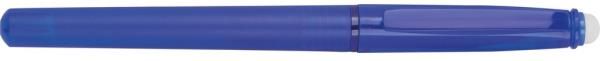 Plastikowy długopis z żelowym wkładem i gumką do mazania w zatyczce. Kolor wkładu jest taki sam, jak kolor korpusu.