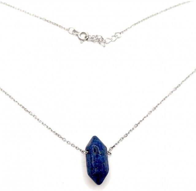Naszyjnik wykonany ze srebra próby 925 , rodowanego. Kamień: Lapis Długość :45 cm + przedłużka Możliwość wykonania na łańcuszku złoconym żółtym złotem