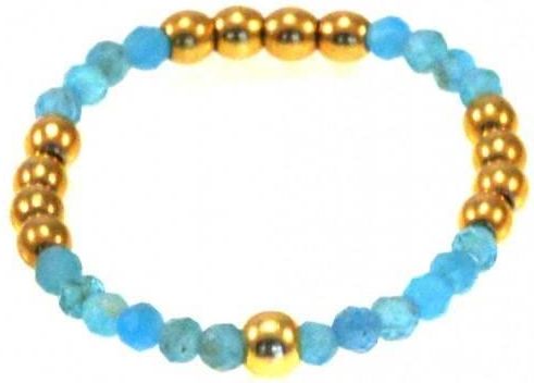 Kamień: Apatyt+ Hematyt + srebrny element, pozłacane 24 karatowym żółtym złotem Pierścionek wykonany na bardzo wytrzymałej gumce, odpornej na uszkodzenia. Rozmiar kamienia: 2mm Rozmiar uniwersalny. Produkt wykonywany ręcznie