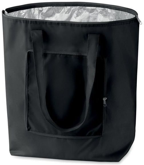 Wygodna składana torba chłodząca. Doskonała na produkty mleczne. 210T poliester z aluminiową folią wewnątrz. Materiał izolacyjny: Folia aluminiowa. Pojemność 13L. czarna wymiary: 41 x 14 x 44 cm pojemność : ok 13 L waga torby: 0,100 gram