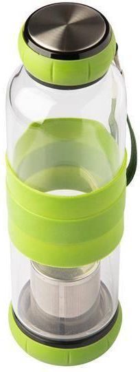 Butelka ze szkła borokrzemowego z zaparzaczem do herbaty. Zaopatrzona w silikonową opaskę oraz pasek do trzymania. Idealna do przygotowania ulubionej herbaty. Pojemność 550 ml.