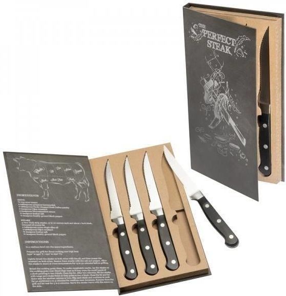 Doskonałe steki można przygotować tylko używając odpowiednich noży. W tym zestawie znajdują się 4 wysokiej jakości noże ze stali nierdzewnej, a dodatkowym plusem kompletu jest ciekawe pudełko.