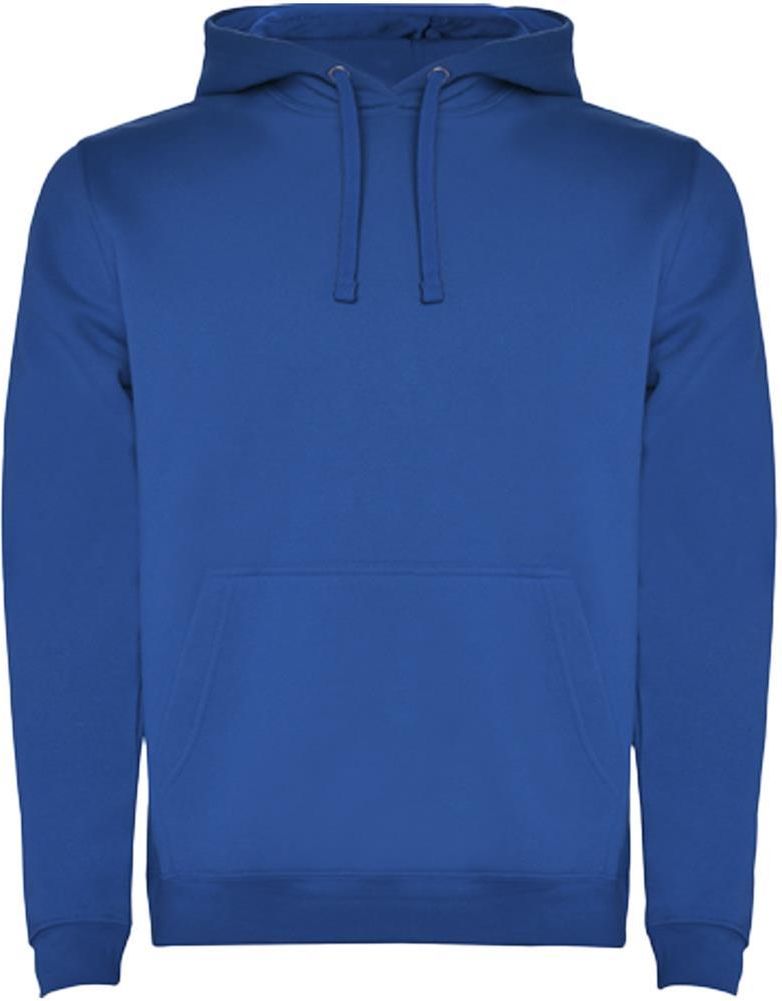 Dwukolorowa bluza z kapturem z podwójnego materiału, kontrastowym regulowanym sznurkiem, wzmocnionymi krytymi szwami w kołnierzu i kieszenią typu kangurka. Ściągacze 1x1 z elastanu w mankietach i pasie. Usuwalna metka.