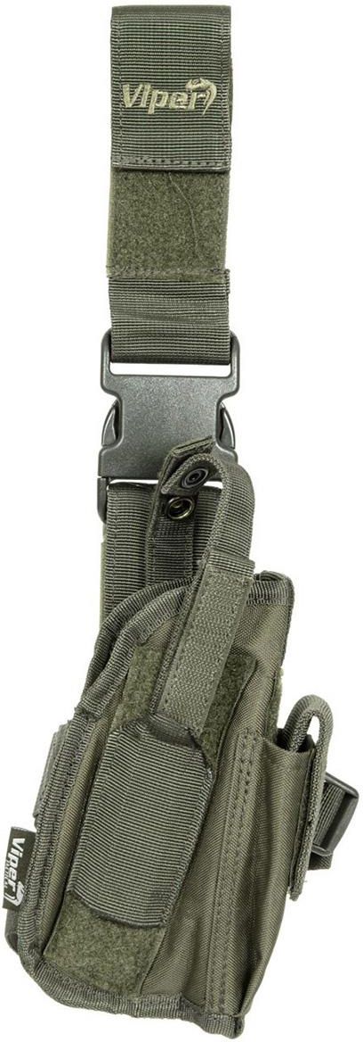 Nazwa produktu: Kabura Tactical Leg Holster Producent: Viper Tactical Kod produktu: VIP-29-030411 Wykonanie: Nylon Waga: 270g Kolor: oliwkowy Mocowanie: na pas i udo Uniwersalna kabura pistoletowa Viper Tactical wykonana z wytrzymałego Nylonu. Kompatybilna z różnymi rodzajami pisoletów dostępnych na rynku, takimi jak Glock, Beretta czy Colt 1911. Kabura jest mocowana przy użyciu dwóch taśm na udo oraz jednej taśmy do pasa. Cechy kabury kabura udowa wbudowana ładownica na 1 magazynek pistoletowy pistolet zabezpieczony rzepem / zatrzaskiem szeroki zakres regulacji zapinana na klamry typu fastex