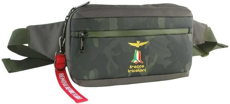 Wielofunkcyjna torba - cross body - nerka - biodrówka na pas włoskiej marki Aeronautica Militare z kolekcji Drone. Wykonana z wysokiej klasy, nowoczesnej tkaniny technicznej, materiału odpornego na wodę. Doskonale sprawdzi się w codziennym użytkowaniu, idealna na spacer czy wycieczkę . Komora główna zamykana na suwak wysokiej klasy z dużym, praktycznym metalowym uchwytem. Przednia, pozioma kieszeń zamykana na suwak z miejscem np. na telefon. Możesz nosić ją jako cross body, nerkę lub torbę na ramię. Do noszenia na biodrach służy wygodny, regulowany parciany pasek. Do noszenia na ramieniu - odpinany i regulowany pasek. W środku znajduje się elegancka podszewka wysokiej jakości z motywem moro. Przód biodrówki zdobi wyszywane Logo Aeronautica Militare Frecce Tricolori. Charakterystyczny odpinany brelok 'Remove Before Flight' stanowi stylowy akcent i element przyciągający uwagę. Torba zaprojektowana w praktyczny i funkcjonalny sposób cechuję się niewielką wagą i starannym wykończeniem.