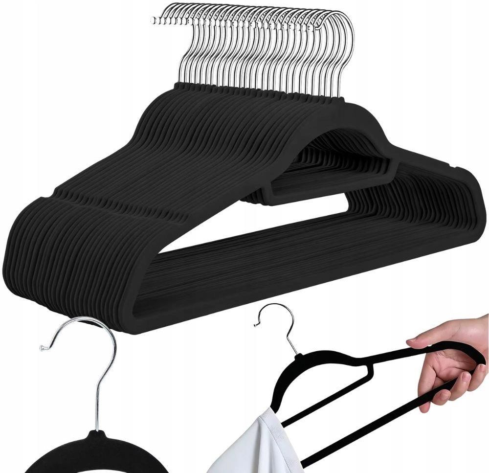 WIESZAKI WELUROWE NA UBRANIA WIESZAK CZARNY ANTYPOŚLIZGOWE KOMPLET 20 SZTUK Skarszewy