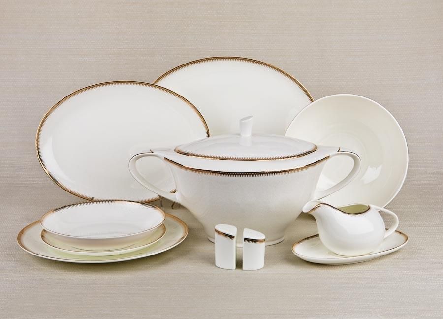 Serwis obiadowy 12/42 Mousse Serwis obiadowy Mousse dla 12 osób z porcelany w odcieniu kremowym. W skład serwisu wchodzi: 1 x waza 3 L 39 × 21 cm, wys. 22 cm 12 x talerz głęboki 20,5 cm, wys. 3,5 cm 12 x talerz deserowy 20,5 cm, wys. 2 cm 12 x talerz obiadowy 27,5 cm, wys.2,5 1 x salaterka 2,5 L 23 cm, wys. 10 cm 1 x sosjerka 350 ml ze spodkiem 21,5 × 12 cm, wys. 10 cm 1 x półmisek owalny mały 32 × 23 cm, wys. 3 cm 1 x półmisek owalny duży 36,5 × 26,5 cm, wys. 3 cm 1 x solniczka 4 × 3,5 cm, wys. 6,5 cm 1 x pieprzniczka 4 × 3,5 cm, wys. 5,5 cm Dzięki tak pięknie zdobionej zastawie twój rodzinny obiad będzie przyjemniejszy i zachwyci Twoich gości. Serwis został wykonany z porcelany Bone China. Charakteryzuje się niezwykłymi zdobieniami oraz delikatnością. Zastawa jedyna taka w całej Polsce i nigdzie indziej jej nie dostaniesz. Doskonale nadaje się na prezent!!! Produkt może być stosowany w zmywarkach, gdy spełnione są następujące wymogi: stosować jedynie delikatne środki myjące — żele stosować tylko programy do delikatnego mycia naczynia w zmywarce układać luźno, by ich stykanie się w trakcie mycia nie powodowało zarysowań rantów przed włożeniem do zmywarki nie stosować ostrych gąbek lub innych przedmiotów mogących spowodować zarysowania przy myciu ręcznym lub wstępnym nie stosować past lub proszków o właściwościach ściernych nie stosować środków żrących ani dezynfekujących Nie nadaje się do użytku w kuchenkach mikrofalowych. Waga (kg): 19,2 Można myć w zmywarce: Tak Można używać w mikrofali: Nie nr katalogowy (260708)