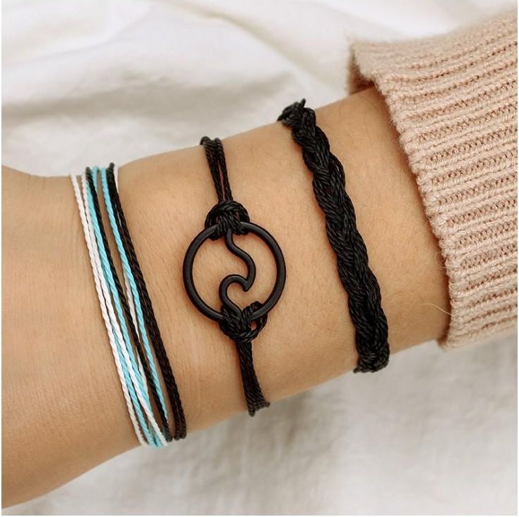 Zestaw bransoletek 3w1 fala B307 Gotowe zestawy 3 w 1 Zestaw bransoletek Do noszenia razem lub osobno Wszystkie bransoletki z regulacją