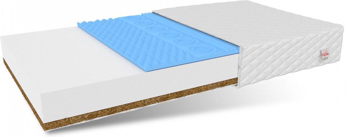 Materac FDM SORRENTO Rozmiar: 60x120 cm | Wysokość: 11 cm Twardość: Góra: średnio miękki | Dół: twardy Budowa pokrowiec Premium profilowana pianka wysoko-elastyczna HR N2538 pianka poliuretanowa T25 wkład kokosowy wełna owcza 1. POKROWIEC PREMIUM Antyalergiczny o membranowej strukturze, został …