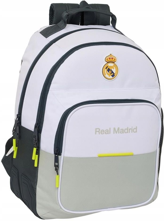 Plecak szkolny tornister młodzieżowy dwukomorowy Real Madryt. Oficjalna, licencjonowana kolekcja klubowa. Wymiary plecaka: 42 cm x 15 cm x 32 cm. O produkcie ergonomiczne i wyściełane szelki na ramiona gumowe ochraniacze narożników po obu stronach, odporne na zarysowania, zwiększają trwałość duża przednia kieszeń uchwyt górny idealny dla młodzieży i dorosłych dwie komory zapinane na podwójny zamek błyskawiczny kieszeń na napoje wzmocnione szwy. Idealny plecak do codziennego użytku, do szkoły, na zajęcia dodatkowe i wycieczki. Dwukomorowy plecak w barwach Realu Madryt dla fanów tej drużyny. Duże logo Realu i charakterystyczne kolory spodobają się każdemu chłopcu, który jest zakochany w tej gwiazdorskiej drużynie! Plecak doskonale sprawdzi się w szkole i podczas treningu. Plecak Real Madrid dba również o komfort każdego dziecka. Miękkie i regulowane szelki z możliwością regulacji odciążą ramiona i plecy. Charakterystyczny wzór jednego z najlepszych klubów piłkarskich od teraz będzie zdobił Twój ulubiony plecak. Bardzo pojemny w środku, z pewnością sprosta wymaganiom każdego ucznia. Pomieścisz w nim wszystkie niezbędne przybory szkolne. Przekonaj się sam, jakie to proste! Plecak jest przyjemny w dotyku i zapewnia ochronę wszystkich przyborów znajdujących się w środku. Wykonany został z bardzo trwałego materiału i jest zamykany zamkiem błyskawicznym. Przedmiot wykonany został z najwyższej jakości materiału. Oficjalny, oryginalny licencjonowany produkt Real Madryt. Fantastyczny gadżet na prezent dla każdego fana tego klubu. Producent: Safta