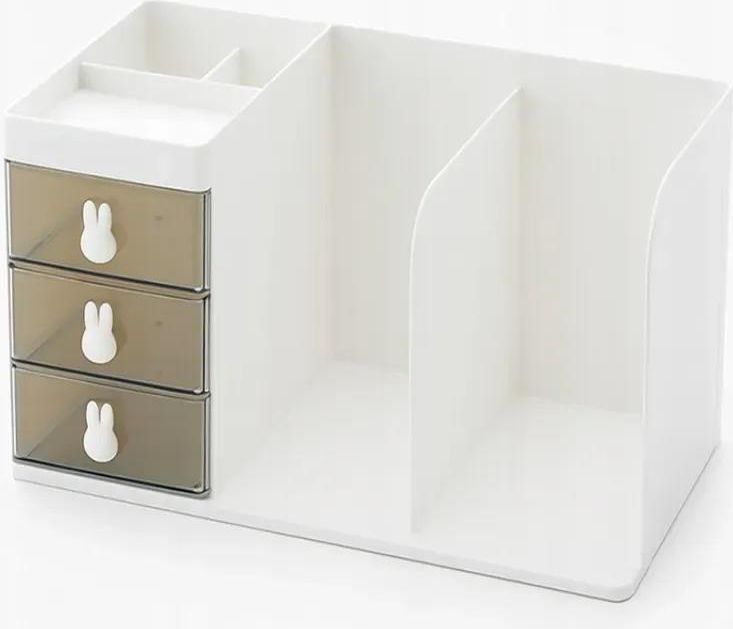 Solidnie wykonany organizer to świetny wybór zarówno na przybory szkolne, książki jak i na kosmetyki. Dzięki swojej przemyślanej konstrukcji zapewnia dużo miejsca do przechowywania, a jednocześnie nie zajmuje wiele przestrzeni. Organizer wyróżnia się eleganckim, minimalistycznym wyglądem, który świetnie wpisuje się w każde wnętrze – od nowoczesnego po klasyczne. Jego funkcjonalność i estetyka sprawiają , że staje się nie tylko praktycznym, ale i stylowym dodatkiem. WSZECHSTRONNOŚĆ ZASTOSOWANIA Zróżnicowane przegródki to klucz do wygody użytkowania – niezależnie od tego, czy przechowujesz notatniki, długopisy czy spinacze, każda rzecz będzie miała swoje miejsce. Taka organizacja nie tylko ułatwia codzienną pracę, ale też pozwala zaoszczędzić czas na szukaniu potrzebnych przedmiotów. Gdy wszystko jest posegregowane, nawet duże nagromadzenie rzeczy nie tworzy chaosu. Zastosowanie różnych wysokości i szerokości przegródek sprawia, że organizer dopasowuje się do Twoich potrzeb. To praktyczne rozwiązanie, które pomoże Ci utrzymać porządek na dłużej. SOLIDNE WYKONANIE Wybierając organizer, zyskujesz coś więcej niż tylko praktyczny dodatek – stawiasz na solidnie wykonany produkt, który posłuży Ci przez długi czas. Konstrukcja z wytrzymałego tworzywa jest odporna na zarysowania i codzienne użytkowanie, a jednocześnie lekka i łatwa w przenoszeniu. Materiał jest łatwy do czyszczenia, więc bez trudu utrzymasz go w idealnym stanie, nawet przy intensywnym użytkowaniu w łazience lub na toaletce. Wysoka jakość wykonania sprawia , że organizer nie tylko wygląda estetycznie, ale także daje pewność, że Twoje akcesoria są odpowiednio zabezpieczone. To niezawodne rozwiązanie, które sprawdzi się w każdej codziennej sytuacji – i w pracy, i w domu. ZALETY PRODUKTU Zróżnicowane przegródki umożliwiają przechowywanie przedmiotów o różnej wielkości, co pozwala Ci utrzymać porządek i szybki dostęp do wszystkiego, czego potrzebujesz. Wbudowane szufladki oferują dodatkową przestrzeń do przechowywania drobnych akcesoriów, dzięki czemu z łatwością unikniesz bałaganu na biurku. Przegródki na książki pozwalają na stabilne ustawienie podręczników i zeszytów, co zwiększa czytelność i porządek w miejscu pracy. Pojemny układ organizera daje Ci możliwość przechowywania wielu przedmiotów w jednym miejscu, bez ryzyka ich zgubienia. Na przybory szkolne sprawdza się idealnie zarówno w pokoju ucznia, jak i w biurze – zapewniając funkcjonalność i wygodę w każdej sytuacji. Wszechstronny design sprawia, że organizer pasuje do różnych wnętrz, jednocześnie oferując maksymalne wykorzystanie dostępnej przestrzeni. Łatwy w utrzymaniu czystości materiał sprawia, że wystarczy przetrzeć go wilgotną ściereczką, by zawsze wyglądał estetycznie i świeżo. SPECYFIKACJA TECHNICZNA Materiał wykonania: tworzywo sztuczne Przegródki na artykuły piśmiennicze, kosmetyki, książki, itp. Szufladki x 3 Funkcje dodatkowe: Łatwe czyszczenie, stabilna konstrukcja Zastosowanie: Biuro, pokój dziecka, domowe biurko, szkoła WYMIARY Wysokość: 16,5cm Szerokość ( dłuższy bok): 38cm Głębokość: 17cm Wymiar 2 szuflad: 4,5cm x 13cm x 9,5cm Wymiar dolnej szuflady: 4,5cm x 13cm x 17cm Wymiary przegródek na książki: 12cm x 16,5cm x 17cm Wymiary przegródek za szufladami: 8,5cm x 6cm x 10,5cm DOSTĘPNE KOLORY Ze względu na losowe pakowanie towaru przez producenta w opakowania zbiorcze, towar wysyłany jest w miks kolorach. Brak możliwości wyboru koloru. Kremowy Biały ZESTAW ZAWIERA Fabrycznie nowy organizer Oryginalne opakowanie