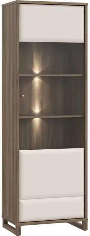 Witryna MAREDA Meble w stylu nowoczesnym MAREDA to połączenie funkcjonalności i elegancji, które doskonale wpisuje się w współczesne trendy wnętrzarskie. Charakteryzują się minimalistycznym designem, prostymi liniami i starannie dobranymi materiałami, które tworzą harmonijną całość. Każdy element kolekcji MAREDA jest zaprojektowany z myślą o maksymalnym komforcie użytkowania oraz estetyce. Wykonane z wysokiej jakości materiałów, meble te są trwałe i odporne na codzienne użytkowanie. Nowoczesne wykończenia, takie jak efektowne połączenia dekorów Dąb Valencia+ Piaskowy i eleganckie detale, dodają wnętrzu stylowego charakteru. Przemyślana konstrukcja mebli MAREDA oferuje praktyczne rozwiązania do przechowywania, takie jak przestronna szafa, pojemne komody. Kolekcja została wyposażona systemem cichego domyku, który zapewni wygodę i komfort użytkowania. Każdy mebel jest funkcjonalny i pozwala na optymalną organizację przestrzeni, co jest szczególnie istotne w nowoczesnych, wielofunkcyjnych wnętrzach. Dzięki nowoczesnemu designowi, meble MAREDA idealnie komponują się z różnorodnymi aranżacjami wnętrz, od minimalistycznych po bardziej ekstrawaganckie. Są idealnym wyborem dla tych, którzy cenią sobie połączenie estetyki z funkcjonalnością, tworząc przestrzeń, która jest nie tylko piękna, ale także praktyczna i wygodna w codziennym. Witryna sprzedawana jest bez oświetlenia. Wymiary Szerokość: 64,8 cm Głębokość: 41,9 cm Wysokość: 195,7 cm Dostępny kolor M966 - Dąb Valencia + Piaskowy