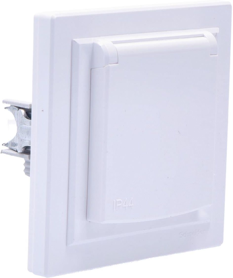 Gniazdo pojedyncze z uziemieniem z przesłonami torów prądowych w kolorze białym, serii Asfora, marki Schneider Electric, o numerze EPH2800621. Podwyższony stopień ochrony mechanizmów IP44 przeznaczonych do instalowania w łazienkach i innych pomieszczeniach z możliwym do stępem wody. Długie i solidne pazury utrzymywane są za pomocą metalowych prowadnic w pozycji pionowej, co ułatwia montaż oraz zwiększa bezpieczeństwo podczas mocowania mechanizmu w puszce instalacyjnej. Zaciski w gniazdach zasilających oznaczone są w czytelny sposób ora z umieszczone są w jednej linii, dzięki czemu znacznie prostsze staje się ułożenie podłączonych kabli przed zamocowaniem gniazda w puszce instalacyjnej (zmniejszenie efektu prężenia przewodów). Zwarta i solidna zabudowa mechanizmu minimalizuje ryzyko przypadkowego konta ktu z elementami pod napięciem i uniemożliwia wypadanie elementów nawet przy całkowitym odkręceniu śrub zacisków. Dodatkowo, solidna ramka montażowa wykonana z galwanizowanego metalu posiada nacięcia ułatwiające pozycjonowanie. Produkt może być instalowany w ramkach wie lokrotnych.Asfora to pełna gama wysokiej jakości łączników i gniazd o eleganckim kształcie oraz szerokiej funkcjonalności. Dostepna jest w 6 kolorach: biały, kremowy, aluminium, stal, brąz oraz antracyt, co pozwala stworzyć 36 kombinacji kolorystycznych. Prosta forma, s zeroki asortyment oraz szybka i łatwa instalacja to zalety serii Asfora.