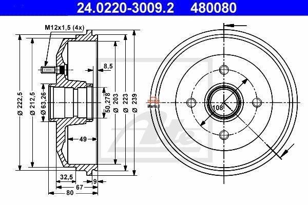 • 2x Bęben hamulcowy 480080 ATE 24.0220-3009.2