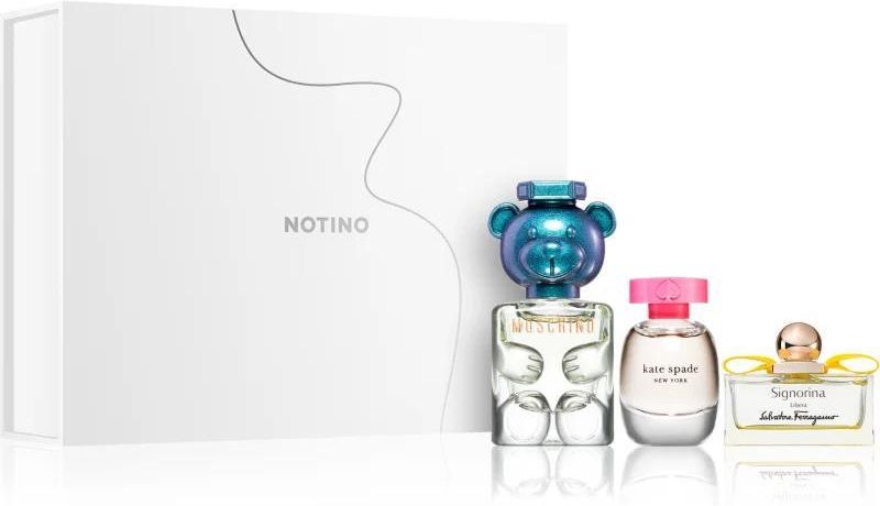 Beauty Discovery Box Exclusive Notino Play in New York, , Zestawy dla kobiet dla kobiet, Luksusowy zapach to zawsze właściwy wybór dla tych, którzy pragną podarować prawdziwe szczęście, a zestaw perfum damskich Beauty Discovery Box Exclusive Notino Play in New York w pięknym opakowaniu to radość ukryta w wielu flakonikach. Postaw na czar idealnie dopasowanego zestawu, który pokocha każda kobieta. Właściwości: w praktycznym opakowaniu o różnym zastosowaniu zawiera miniatury zapachów miniatura zapachu idealnie mieści się w torebce Zawartość zestawu: Ferragamo Signorina Libera woda perfumowana 5 ml Moschino Toy 2 Pearl woda perfumowana 5 ml Kate Spade New York woda perfumowana 4,5 ml