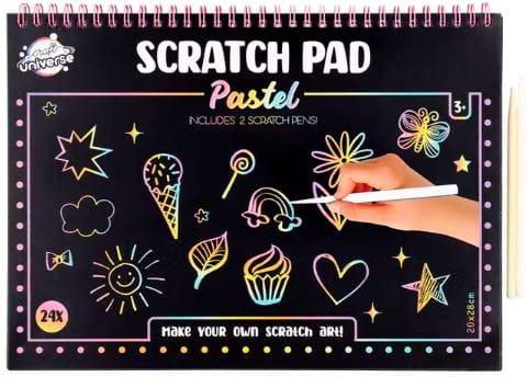 Magiczny blok zdrapka 24 arkusze A4 Holograficzny Wyczaruj najpiękniejsze dzieła zdrapując czarną powierzchnię za pomocą specjalnego długopisu. Magiczny blok zawiera 24 arkusze oraz 2 specjalne długopisy do zdrapywania. Specyfikacja: Razem z 2 długopisami do zdrapywania Format A4
