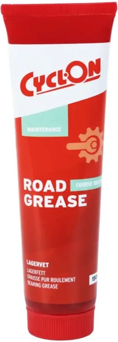 Smar łożyskowy CyclOn Road Grease na bazie litu, odpowiedni do łożysk suportu, łożysk sterów, łożysk kół i piast rowerów szosowych i elektrycznych. Ten smar łożyskowy charakteryzuje się niskim oporem toczenia i zmniejsza zużycie materiałów. Zawiera rewolucyjne mikrododatki, które sprawiają, że smar nie ulega zmydleniu i jest odporny na działanie soli i wody słodkiej. Ponadto, smar Road Grease jest bezpieczny w użyciu z karbonem. WYPRODUKOWANO W HOLANDII Cechy Smar łożyskowy na bazie litu Wodoodporny Zmniejsza opór toczenia Bezpieczny do stosowania w rowerach karbonowych Nadaje się do łożysk ceramicznych Jak używać smaru łożyskowego CyclOn Krok 01 Wyjmij wszystkie części znajdujące się przed łożyskami, pełniące funkcję uszczelnienia, i upewnij się, że widoczne są łożyska lub luźne kulki. Wskazówka: Ułóż wszystkie części w odpowiedniej kolejności demontażu. Dzięki temu z łatwością złożysz je ponownie. Krok 02: Zdejmij łożysko lub kulki z roweru lub kół i wyczyść je preparatem CyclOn Bionet. Upewnij się również, że wszystko wokół łożyska jest czyste. Krok 03 Nasmaruj łożysko lub kulkę smarem CyclOn Road i zamontuj łożysko lub kulkę z powrotem w rowerze lub kołach. Krok 04 Wymień wszystkie części uszczelniające łożyska w prawidłowej kolejności.