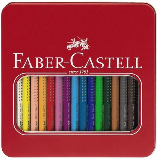 Kredki Faber-Castell Jumbo Grip 16 trójkątne, OPAKOWANIE METALOWE 16 sztuk Kredki Jumbo Grip Faber-Castell 16 szt. w opakowaniu metalowym. Doskonałe do wielu technik artystycznych, dla hobbystów i dzieci. W większym rozmiarze Jumbo. Zachwycają żywymi i intensywnymi kolorami Posiadają wysokiej …