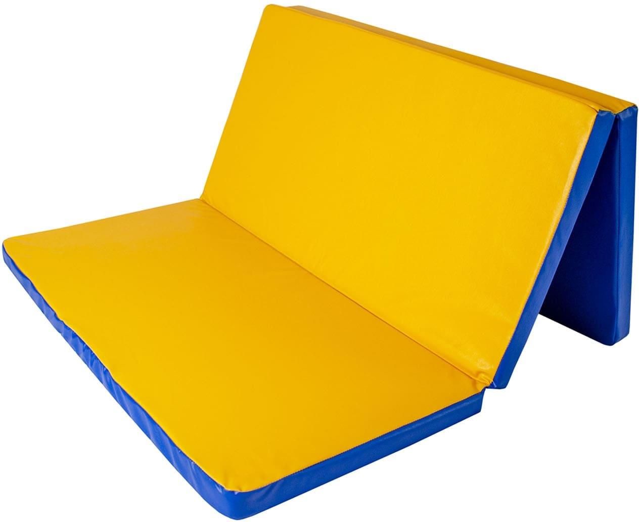 Materac do ćwiczeń Gamma 150×100x8 cm 3-częściowy niebiesko-żółty Dzięki składanej konstrukcji maty są łatwe w użyciu, przechowywaniu i transporcie. Idealnie nadają się do użytku w domu, w pokoju zabaw dla dzieci oraz w sali gimnastycznej. WAZNE Wymiary w rozłożonym stanie: 150 x 100 cm. Grubość: 8 cm. Ilość części: 3 Materac gimnastyczny 3-częściowy Gamma to praktyczny i komfortowy składany mat sportowy. Wykonany z pianki o gęstości 22 kg/m³, pokryty zdejmowanymi pokrowcami z winylu.
