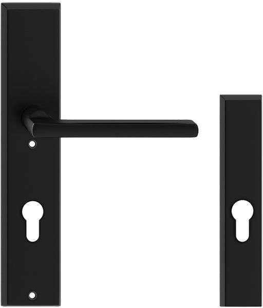 Estetyczne i eleganckie rozwiązanie okuć do drzwi zewnętrznych wyposażonych w antabę - pochwyt drzwiowy. Specjalna konstrukcja zestawu umożliwia zamaskowanie otworu podklamowego od strony zewnętrznej drzwi - często taki otwór wykonywany jest już na etapie produkcji drzwi, dlatego chcąc zastosować antabę - pochwyt drzwiowy, należy skorzystać ze specjalnego zestawu okuć do drzwi z antabą Metro. Elementy zestawu; - wewnętrzna klamka Metro na szyldzie podłużnym czarna - specjalny szyld zewnętrzny na wkładkę czarny. Produkt wykonany jest ze stali nierdzewnej 304 wg amerykańskiej normy AISI - zastosowanie tego gatunku stali nierdzewnej pozwala na użytkowanie produktu przy drzwiach zewnętrznych. Produkt dostępny jest w modnym i trwałym kolorzeCzarny Mat - 9005 według wzornika RAL, dlatego idealnie będzie komponował się z antabą i innymi elementami drzwi w czarnym wykończeniu (matowym) - np. panelami dekoracyjnymi. Szyld zewnętrzny posiada niewidoczne od strony zewnętrznej elementy montażowe, co praktycznie uniemożliwia jego nieautoryzowany demontaż (od strony zewnętrznej). Oryginalny zestaw zawiera: klamkę Metro oraz szyld zewnętrzny o specjalnej konstrukcji (zestaw do jednych drzwi zewnętrznych) oraz pełen zestaw elementów montażowych. Maksymalna grubość drzwi zewnętrznych, do których można zamontować zestaw korzystając ze standardowego zestawu montażowego (w zestawie) to 75 mm. W przypadku grubszych drzwi prosimy o kontakt, dobierzemy zestaw montażowy o odpowiedniej długości. Grubość szyldu wynosi 11 mm. Zestaw może być zastosowany w drzwiach z zamkiem listwowym - jego konstrukcja umożliwia podnoszenie rękojeści klamki do góry.