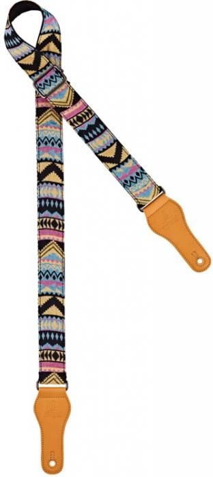 The WORLD SERIES – made from 100% cotton comes for guitar in 49 mm (1,93") width and up to 1580 mm (62,2") length and for ukulele in 37 mm (1,45") width and up to 1390 mm (54,33") length. The strong but flexible faux leather ends fit all types of strap pins and features an embossed logo. Available in eight different patterns. Pattern: andean sky