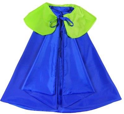 Peleryna niebieska z zielonym kołnierzem Świetna na przedstawienia, spektakle, animacje, zabawy karnawałowe, halloween, andrzejki i inne. Peleryna wykonana z barwnego, przyjemnego materiału, staranne wykonana. Strój zawiera pelerynę z kołnierzem i wygodne wstążeczki do zawiązania z przodu. Peleryna jest bardzo uniwersalna i sprawdzi się w każdej tematyce. Wymiary: Długość 70 cm Cena za sztukę.