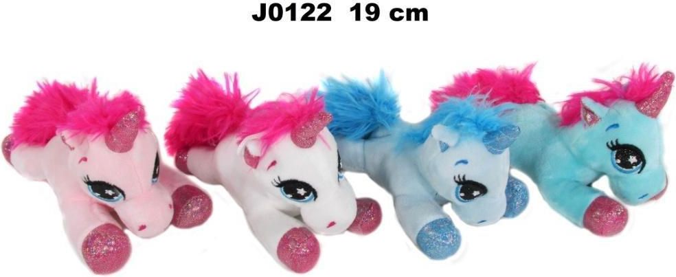 Maskotka pluszowa jednorożec 4 kolory Produkt występuje w kilku wersjach kolorystycznych, wybierany losowo. Cena dotyczy jednej sztuki. Wiek: 0-3