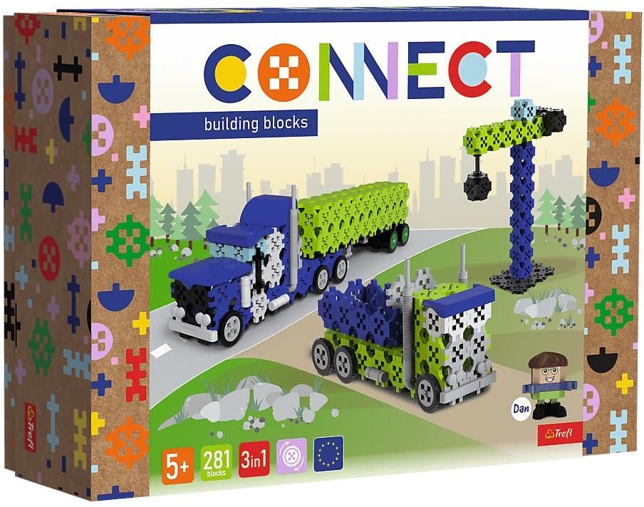Trefl Zestaw klocków Connect 3w1: Ciężarówka / Plac budowy 61977 Skawina