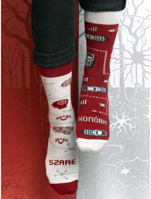 Skarpety SZARE KOMÓRKI to bardzo dobry wybór dla każdej osoby o nieprzeciętnym ilorazie inteligencji. Oryginalny wzór łączący mózgi, neurony i ponadczasową komórkę znanej fińskiej marki to istna uczta dla zmysłów! Szaro-bordowe asymetryczne skarpety z pewnością będą hitem w pracy, na dansingu czy …