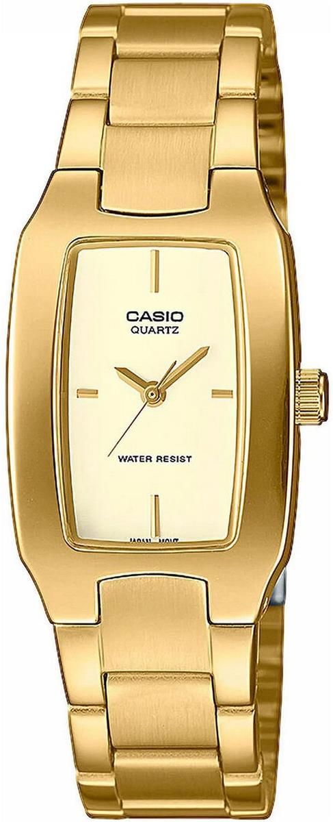 CASIO LTP-1165PN-9CEF - Classic - Damski - Zegarek na bransolecie Mechanizm Typ - KWARCOWY - Zasilany baterią srebrową. Koperta Materiał - STAL NIERDZEWNA Kształt - PROSTOKĄTNY Kolor - ZŁOTY Wymiary - SZEROKOŚĆ 21mm / WYSOKOŚĆ 32mm / GRUBOŚĆ 9mm Wodoszczelność - 30M / 3ATM, Szkło - MINERALNE Tarcza Typ - ANALAGOWY - Wskazówkowa forma prezentacji czasu. Kolor - ZŁOTY Indeksy - w kolorze ZŁOTYM Wskazówki - w kolorze ZŁOTYM Pasek / Bransoleta Typ - BRANSOLETA Materiał - STAL NIERDZEWNA Kolor - ZŁOTY Szerokość przy mocowaniu - 14cm Szerokość przy zapięciu - 12cm Maksymalny obwód - 18,5cm Funkcje BRAK. Informacje ogólne Pochodzenie marki - JAPONIA GWARANCJA 3+3 LATA - produkt z oficjalnej dystrybucji GRUPA ZIBI S.A. Podstawowy okres gwarancji wynosi 3 lata z możliwością odpłatnego przedłużenia, o dodatkowe 3 lata, na decyzję jest 30 dni od daty zakupu. Przy zakupie otrzymujesz oryginalny zegarek CASIO Classic, firmowe opakowanie CASIO, instrukcję obsługi w języku polskim, kartę gwarancyjną dystrybutora. Grawerowanie na zegarku - Personalizacja Chcesz sprawić komuś wyjątkowy prezent ? Oferujemy możliwość spersonalizowania prezentu, który nabierze niepowtarzalnego charakteru dzięki usłudze grawerowania. Krótsza dedykacja daje pewność, że tekst zmieści się na dekielku, a każda jej część będzie odpowiednio rozmieszczona. W przypadku braku możliwości wygrawerowania wybranego tekstu czy grafiki na konkretnym modelu zegarka, kontaktujemy się w tej sprawie telefonicznie . Ponieważ staramy się, aby spełnić oczekiwania klientów, zawsze proponujemy najlepsze rozwiązanie. (Zdjęcie po lewej stronie i poniżej ma charakter podglądowy.) Oprócz tekstu istnieje także możliwość wygrawerowania znaków graficznych które ułatwiają przekaz, może to być: logo firmy, serce, znak wieczności inne grafiki związane z okolicznością. Przykładowe treści graweru "18 lat - Dominice - Rodzice" "Dzisiaj, Jutro, Na zawsze" "Niech odmierza Ci same szczęśliwe chwile" "Kochanej żonie - mąż Wojtek" "Kiedy spojrzysz pamiętaj - B." "Szczęśliwi czasu nie liczą" W przypadku zakupu zegarek dla siebie, możesz spersonalizować go informacjami na przykład: imię i nazwisko, inicjały, pseudonim, grupa krwi, ważna data, myśl przewodnia, motto. Warunki grawerowania Grawer jest wykonywany tylko na zegarkach zakupionych u nas. Treść graweru należy napisać w polu "Informacje dla sprzedającego". Czas realizacji zamówienia z grawerowaniem wynosi od 1 do 3 dni roboczych. Zegarki z grawerem nie podlegają zwrotowi ani wymianie. Grawerowania jest darmowe, przy zakupie zegarka z naszej oferty, Usługę oferujemy tylko po opłaceniu z góry zegarka, zamówienia za pobraniem nie podlegają usłudze grawerowania. Informacje o usłudze grawerowania Grawerowanie wykonywane jest profesjonalnych urządzeniach firmy GRAVOGRAPH . Preferowaną metodą grawerowania jest znakowanie laserowe , istnieje również możliwość grawerowania mechanicznego (diamentem). Projekt graweru wysyłamy do akceptacji, wizualizacje grawerowania wykonujemy tylko w trudnych przypadkach, jak zdjęcia lub logotypy. Grawer może znajdować się na deklu zegarka lub na zapięciu bransolety jeżeli jest wystarczająco miejsca do wykonania graweru. Usługa grawerowania jest możliwe tylko na metalowych elementach, nie wykonujemy graweru na tworzywach, ceramice i szkle. UWAGA! Grawerowany tekst nanoszony jest według fabrycznych napisów, który nie zawsze fabrycznie jest zamocowany względem linii koperty zegarka.