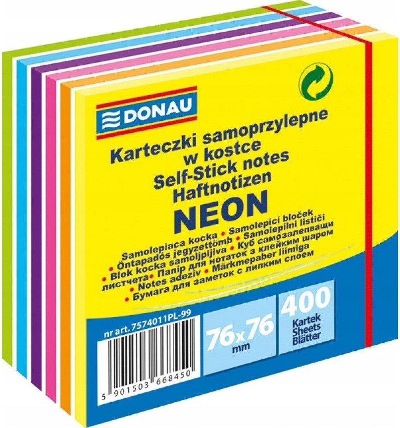 Donau Bloczek Samoprzylepny 76X76Mm 400K 6 Kolorów Neonowych 7574011Pl-99 Skępe