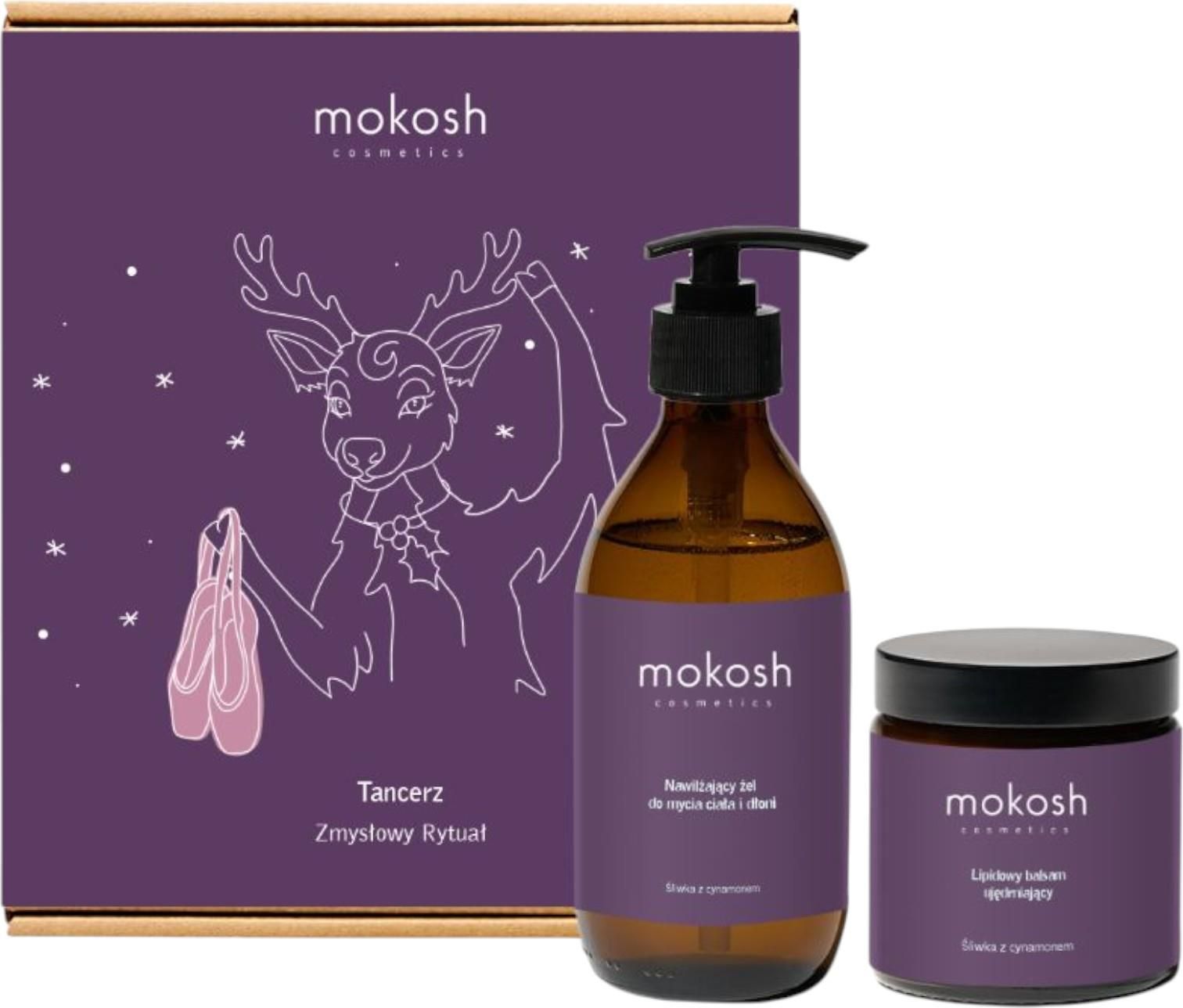 Mokosh Zestaw Tancerz Zmysłowy Rytuał Zestaw świąteczny Mokosh Tancerz - Zmysłowy Rytuał to elegancka pielęgnacja, która łączy finezję, ciepło i zmysłowość w jednym rytuale. Inspirowany subtelnym urokiem renifera Tancerza, otula ciało aromatem śliwki i cynamonu - zapachem przywodzącym na myśl …