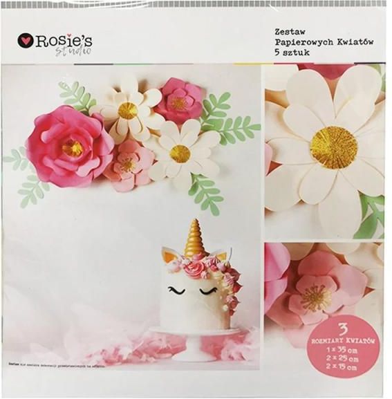 - papierowe elementy z kolekcji Rosie's studio - wzór: kwiaty - w opakowaniu 5 kwiatów - rozmiary: 1 x 35 cm; 2 x 25 cm; 2 x 15 cm