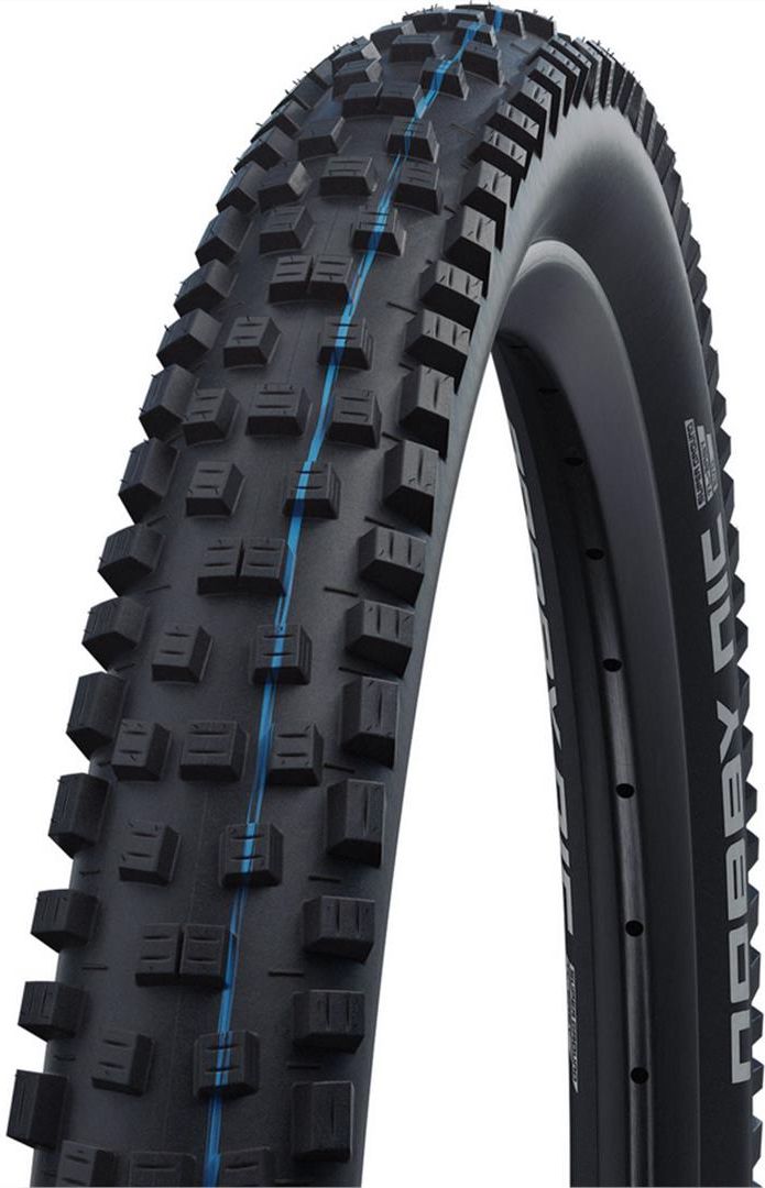 Nobby Nic Evolution to jedna z najbardziej uniwersalnych opon w ofercie Schwalbe. Model sprawdza się zarówno podczas wyścigów XC, jak i jazdy ścieżkowej. Mocne i rzadko rozmieszczone klocki łatwo oczyszczają się z błota. Konstrukcja bieżnika zapewnia doskonałą przyczepność oraz skuteczność hamowania. Wszystkie wersje poza Liteskin oraz Double Defence są przystosowane do systemu bezdętkowego. Najważniejsze informacje Przeznaczenie: MTB Wersje dętkowe są kompatybilne z systemem Tubeless (wyjątkiem są: Liteskin i Double Defence) Masa: 710 g (dla rozmiaru 29 x 2.25) Wersje: Addix Speedgrip Addix Speedgrip to mieszanka gumy zaprojektowaną pod kątem niskich oporów toczenia i dobrej przyczepności. Posiada także właściwości tłumiące i wysoką wytrzymałość, dlatego jest polecana do dyscyplin XC, All-mountain i Trail. Pacestar Pacestar to mieszanka gumy przeznaczona do szybkiej jazdy XC. Zapewnia bardzo niskie opory toczenia, poprzez specjalnie ukształtowany środek bieżnika. Pasy boczne zwiększają przyczepność opony. Mieszanka Trailstar Mieszanka Trailstar została zaprojektowana do jazdy typu Enduro i Freeride. Opona wyposażona w tę technologię posiada podbudowę, która łatwo się toczy. Grzbiet modelu i boki odpowiadają za zwiększoną przyczepność. TLE Snakeskin Wersja Snakeskin oznacza oponę ze wzmocnionymi ściankami, które są odporne na przecięcia. Dodatkowo model jest fabrycznie przygotowany do konwersji na system bezdętkowy Tubeless Easy. Double Defence Technologia Double Defence oznacza podwójną ochronę opony. Wkładka Race Guard pod bieżnikiem chroni model przed przebiciami, a boczne ścianki w systemie Snake Skin zapewniają osłonę na przecięcia. Liteskin Opona Liteskin jest lekka z powodu bardzo cienkich ścianek bocznych. Stopka modelu została przystosowana do wysokich ciśnień.