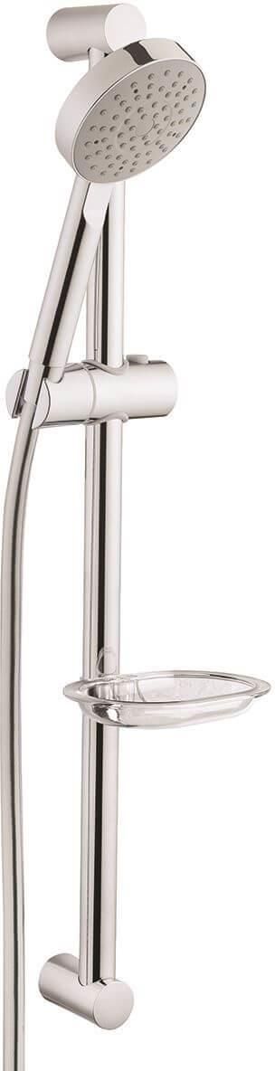 Vitra Master Slot 1F zestaw prysznicowy z drążkiem chrom A45693EXP Producent/Dystrybutor: Vitra Numer katalogowy: A45693EXP Seria: Master Montaż: naścienny Kolor producenta: chrom Zawartość zestawu: drążek prysznicowy; mydelniczka; słuchawka prysznicowa; uchwyt prysznicowy; wąż prysznicowy Długość drążka [cm]: 67,5 cm Ilość strumieni: 1 Master Slot 1F to zestaw prysznicowy marki Vitra. W skład zestawu wchodzi drążek, słuchawka prysznicowa 1-strumieniowa, wąż prysznicowy, uchwyt na słuchawkę oraz mydelniczka. Długość całego zestawu wynosi 67,5 cm. Zestaw prysznicowy w kolorze chrom. Wykończenie to jest odporne na uszkodzenia i łatwe w czyszczeniu. Zestaw wyróżnia się minimalistycznym i prostym wyglądem, który sprawdzi się w wielu wnętrzach. Zastosowane technologie Vitra DurableHose Zaawanasowana technologia sprawia, że wąż prysznicowy jest odporny na wysoką temperaturę, ciśnienie i ciężar. Aqua Air Drop Specjalne technologie sprawiają, że krople wody są bardziej obszerne i delikatniejsze. EasyClean Wąż prysznicowy posiada gładką powierzchnię, dzięki czemu nie plącze się i jest łatwy w czyszczeniu. No limescale silicon nozzles Specjalnie zaprojektowany aerator silikonowy, który umożliwia łatwe usuwanie osadu wapiennego poprzez przetarcie jego silikonowych brzegów palcem. AntiTangle Jednoczęściowy wąż prysznicowy, posiada gładką powierzchnię, co zapobiega wyciekom wody z powodu pęknięcia i zginania. Easy installation Zastosowane mechanizmy pozwalają na łatwą i szybką instalację.