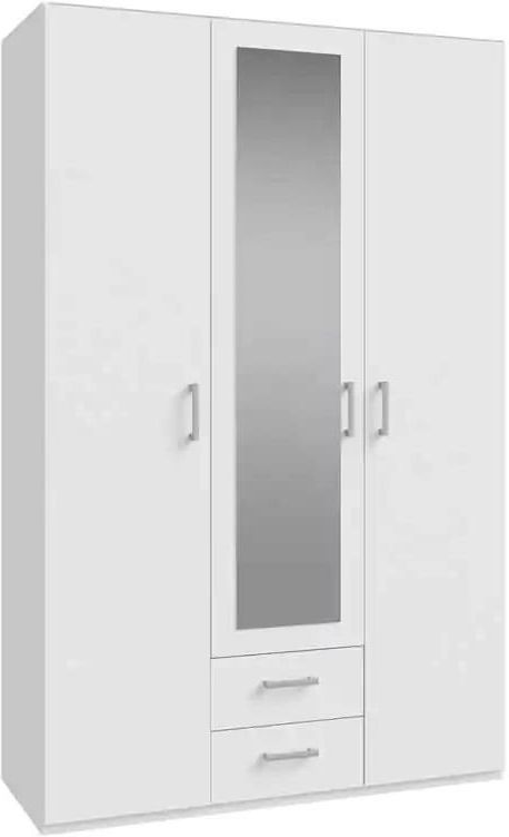 Biała szafa z szufladami i lustrem z kolekcji ECONOBOX 2 to mebel, który sprawdzi się w sypialni i garderobie, tworząc w nich mnóstwo miejsca do funkcjonalnego przechowywania rozmaitych przedmiotów. Wnętrze szafy zostało zagospodarowane przy pomocy drążków na wieszaki i półek, ale można spersonalizować je dodatkowymi akcesoriami. Dzięki temu mebel dopasuje się idealnie do potrzeb swojego użytkownika. Zalety szafy z szufladami ECONOBOX 2 Prezentowana szafa z lustrem i szufladami z kolekcji ECONOBOX 2 została zaprojektowana z myślą o maksymalnej funkcjonalności tak, jak inne meble Forte. Szafa jest pojemna i praktycznie zagospodarowana. Dzięki szufladom na prowadnicach kulkowych tworzy miejsce idealne do przechowywania małych przedmiotów. Natomiast za sprawą drążków i półek pozwala wygodnie przechowywać w szafie odzież poskładaną i odzież na wieszakach. Szafa została wykonana z wysokiej jakości płyty meblowej, która nie jest wymagająca w codziennej pielęgnacji. Mebel posiada także proste uchwyty w kolorze aluminium oraz lustrzany front, który ułatwia komponowanie stylizacji i optycznie powiększa pomieszczenie. Gdzie sprawdzi się szafa z lustrem? Szafa z lustrem biała to najlepszy wybór do małych pomieszczeń. Jasny kolor korpusu i frontów sprawia, że mebel odbija światło i nadaje aranżacji efekt przestronności. Biel jest też kolorem świeżym i eleganckim, a nade wszystko uniwersalnym. Dzięki temu szafa pasuje do wielu stylów aranżacyjnych i różnych pomieszczeń, łatwo komponując się z innymi barwami wyposażenia czy dodatków. Wymiary szafy Szerokość: 133,2 cm Głębokość: 54,2 cm Wysokość: 210,5 cm Dostępny kolor Biały mat