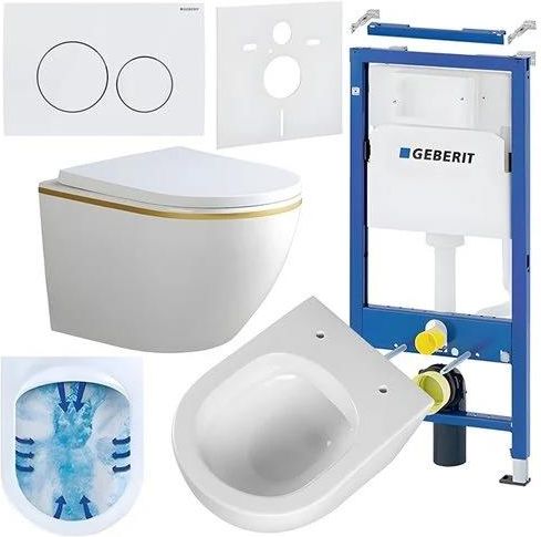 ZESTAW PODTYNKOWY WC STELAŻ GEBERIT DUOFIX MISKA PEAK-WH-GL-RIM-02 PRZYCISK DELTA 20 BIAŁY ZESTAW: ZES-PEAK-40 Zestaw podtynkowy WC Geberit Duofix z wiszącą miską WC PEAK-WH-GL-RIM-02 oraz przyciskiem spłukującym Delta 20 to idealne rozwiązanie dla osób poszukujących eleganckiego i funkcjonalnego systemu do łazienki. System ten charakteryzuje się nowoczesnym designem, który doskonale wpasowuje się w minimalistyczne wnętrza, zapewniając jednocześnie maksymalną oszczędność miejsca. Stelaż podtynkowy umożliwia ukrycie elementów instalacyjnych w ścianie, dzięki czemu łazienka zyskuje na przestronności i estetyce. Miska WC PEAK-WH-GL-RIM-02, wykonana z wysokiej jakości ceramiki sanitarnej, gwarantuje nie tylko elegancki wygląd, ale także łatwość czyszczenia i higienę, co sprawia, że jest to doskonały wybór do nowoczesnych wnętrz. Dodatkowym atutem tego modelu jest zastosowany system Rimless, który rewolucjonizuje sposób spłukiwania toalety. Dzięki innowacyjnej, bezkołnierzowej konstrukcji, woda jest równomiernie rozprowadzana po całej powierzchni miski, co zapewnia skuteczne i dokładne spłukiwanie. Specjalnie zaprojektowana technologia eliminacji miejsc, w których mogą gromadzić się bakterie, gwarantuje wysoki poziom higieny. Przycisk Geberit Delta 20 w kolorze białym stanowi subtelny akcent, który doskonale komponuje się z całością zestawu. Wyposażony w system dwudzielnego spłukiwania, umożliwia oszczędne gospodarowanie wodą, co czyni go ekologicznym wyborem. Całość zestawu została zaprojektowana z myślą o komforcie użytkowania oraz szybkim i bezproblemowym montażu, co sprawia, że jest to niezawodne i długotrwałe rozwiązanie do każdej łazienki. Przycisk spłukujący Geberit Delta 20 to idealne uzupełnienie nowoczesnych łazienek. Wyróżnia się eleganckim, minimalistycznym designem, który doskonale komponuje się z różnymi stylami aranżacji wnętrz. Wykonany z trwałych materiałów, zapewnia długą żywotność bez ryzyka uszkodzeń. Dane techniczne przycisku Marka: GEBERIT Seria: Delta 20 Kolor: Biały Materiał: Tworzywo sztuczne Maks. siła nacisku (N): 20 N Uruchamianie: Z przodu Szerokość (B): 24,6 cm Długość (H): 16,4 cm Wysokość (T): 2,3 cm Stelaż podtynkowy Geberit Duofix to wytrzymała i łatwa w montażu konstrukcja, idealna do zabudowy w ściankach działowych. Dzięki samonośnej ramie z antykorozyjną powłoką malowaną proszkowo, stelaż jest niezwykle trwały i zapewnia stabilność w każdych warunkach montażowych. Spłuczka z izolacją przeciwwilgociową i systemem dwudzielnego spłukiwania oszczędza wodę, a regulowane nóżki ułatwiają montaż nawet na nierównym podłożu. Dodatkowym atutem zestawu jest mata wygłuszająca, która skutecznie tłumi hałas podczas spłukiwania i korzystania z toalety. Dzięki innowacyjnej konstrukcji mata zapobiega przenoszeniu wibracji na sąsiednie pomieszczenia, co podnosi komfort użytkowania, szczególnie w mieszkaniach, gdzie łazienka znajduje się blisko sypialni lub salonu. Dane techniczne stelaża Marka: GEBERIT Szerokość stelaża: 50 cm Wysokość stelaża: 112 cm Maks. temperatura wody: 25 °C Ustawienia fabryczne ilości wody spłukującej: 6 / 3 l Zakres regulacji spłukiwania dużą ilością wody: 4 / 4.5 / 6 / 7.5 l Zakres regulacji spłukiwania małą ilością wody: 2–4 l Przepływ obliczeniowy: 0.12 l/s Minimalne ciśnienie przepływu dla przepływu obliczeniowego: 50 kPa Regulowana wysokość: Tak Mata wygłuszająca w zestawie: Tak Dane techniczne miski Marka: Hydrosan Rozmiar: 49 x 37 x 36 cm Montaż: Wisząca System spłukiwania: Rimless 3.0 - bezrantowy Materiał: Ceramika sanitarna Kolor miski: Biały + Złoty pasek Materiał deski: Duroplast UF Rodzaj deski: Wolnoopadająca Kolor deski: Biały Wersja slim: Nie Łatwe wypinanie: Tak Zalety zestawu Kompleksowość: Zestaw zawiera wszystkie niezbędne komponenty do instalacji toalety wiszącej. Jakość: Produkty renomowanej marki Geberit, znane z wysokiej jakości wykonania, trwałości oraz niezawodności. Estetyka: Nowoczesny design i eleganckie wykończenia produktów sprawiają, że zestaw idealnie wpasuje się w każdą łazienkę, nadając jej nowoczesny i estetyczny wygląd. Funkcjonalność: Technologia Rimless w misce WC zapewnia łatwość czyszczenia i utrzymania higieny, eliminując trudnodostępne miejsca. Wolnoopadająca deska zwiększa komfort użytkowania, eliminując hałas oraz ryzyko uszkodzeń. Ekonomia: Dwudzielny przycisk spłukujący pozwala na oszczędność wody, dzięki możliwości wyboru ilości wody do spłukiwania. Regulacja ilości wody spłukującej w stelażu daje dodatkową możliwość oszczędności. Trwałość: Stelaż Geberit Duofix cechuje się solidną konstrukcją, która zapewnia stabilność i trwałość całej instalacji. Dodatkowo, cicha praca spłuczki zwiększa komfort użytkowania. Łatwość montażu: Zestaw jest zaprojektowany z myślą o łatwym i szybkim montażu. Komfort akustyczny: Mata wygłuszająca skutecznie tłumi hałas podczas spłukiwania i korzystania z toalety, zapewniając cichą i dyskretną pracę zestawu. * Uwaga! Rzeczywiste wymiary mogą się różnić od tych podanych w ofercie. Tolerancja błędów może wynosić +/- 5%.