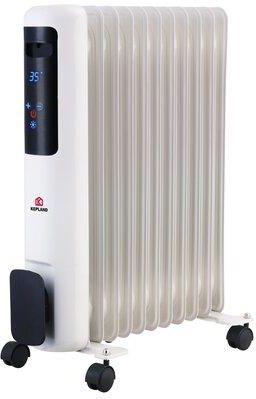 Grzejnik olejowy marki Kepland w kolorze białym z wyświetlaczem LCD zapewnia utrzymanie stałej temperatury w pomieszczeniu. Wyposażony jest w trzy stopnie regulacji mocy grzewczej oraz termostat pozwalający na płynną regulację temperatury. Grzejnik ma ochronę przed przegrzaniem.