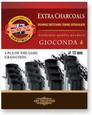 Koh i noor Gioconda Extra Charcoals Węgiel prasowany twardość: nr 3 medium / średni średnica: 12 mm, długość: 75mm kolor: czarny ilość: 4 szt